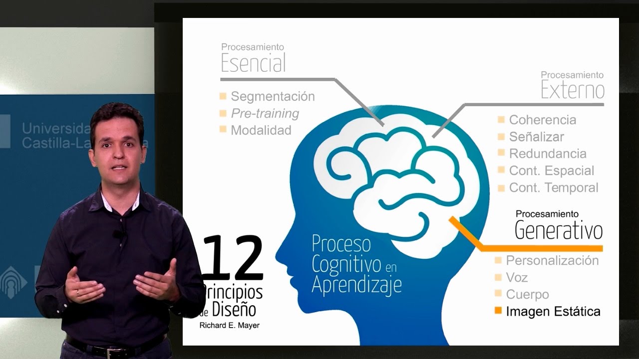 El vídeo anterior de la Teoría Cognitiva del Aprendizaje Multimedia se complementa con la enumeración de los 12 principios de diseño de Richard Mayer. Agrupados en tres bloques: procesamiento esencial, procesamiento externo y procesamiento generativo, estos principios plantean de un modo claro algunas sugerencias de diseño de componentes multimedia eficaces.
