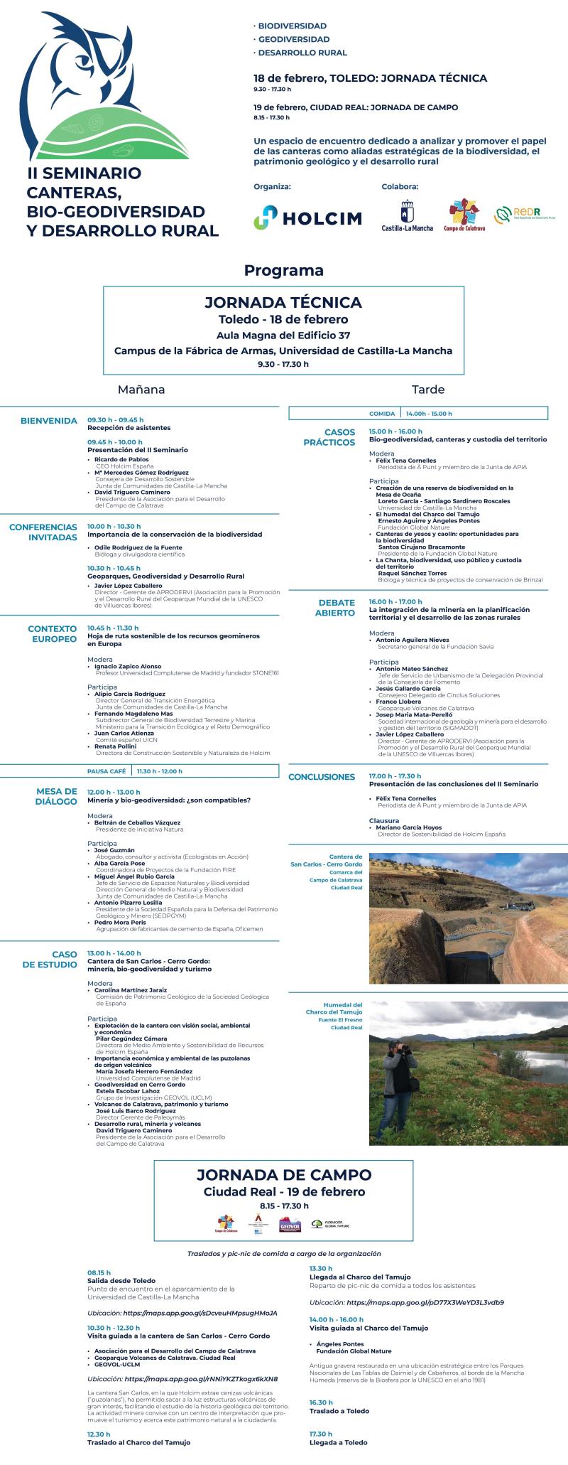Los días 18 y 19 de febrero de 2026 se ha celebrado, a iniciativa de la empresa cementera HOLCIM , el II Seminario Canteras, Bio-Geodiversidad y Desarrollo Rural.
