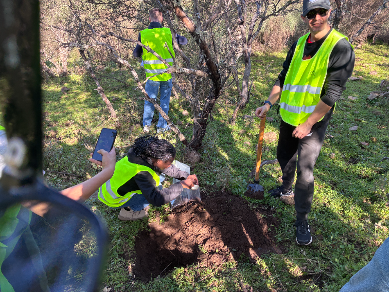 El Equipo A tomando muestra de suelo y de hojas de encina.