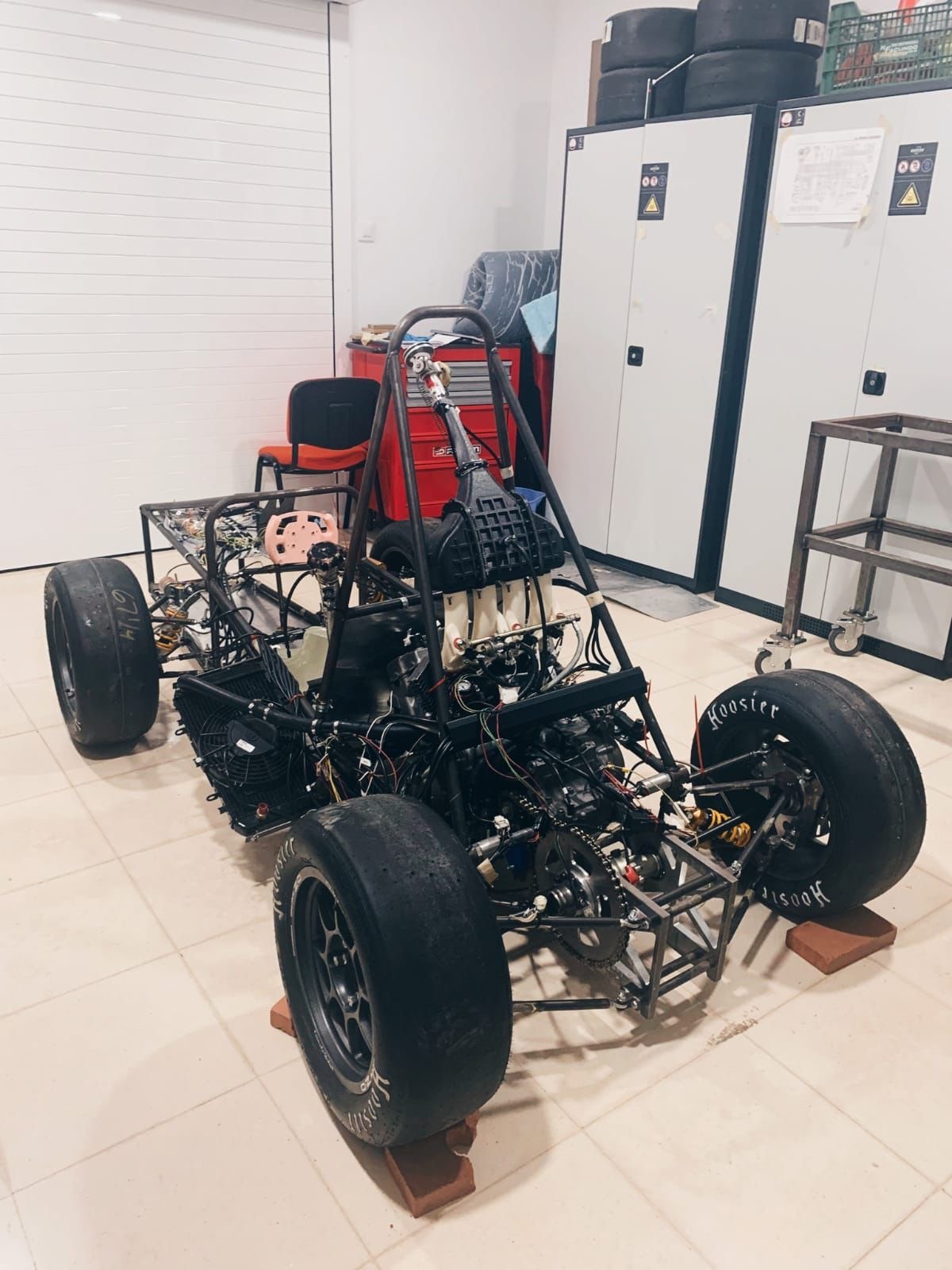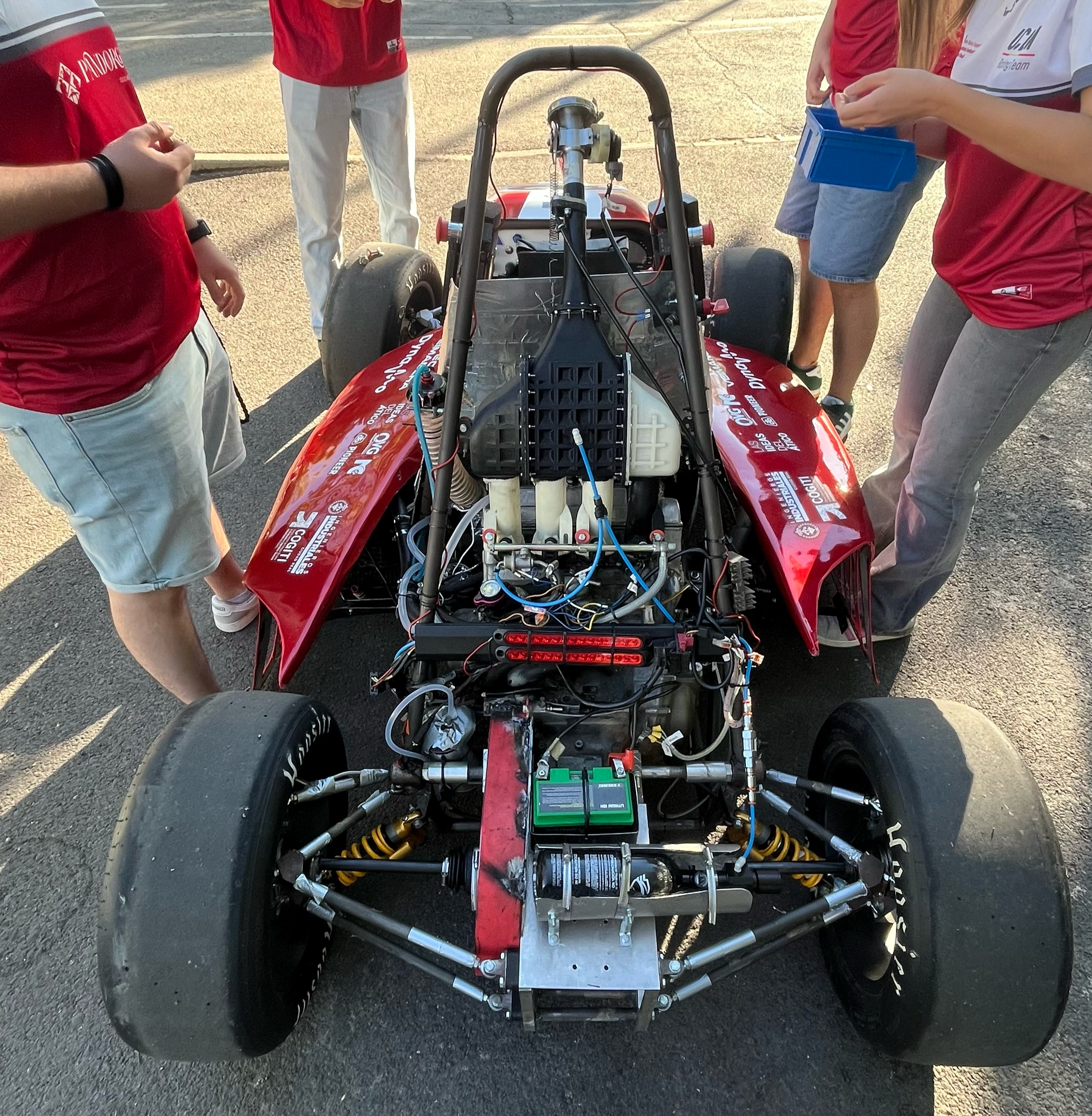 Actualmente competimos en la categoría de combustión interna, empleando un motor proveniente de una Honda CBR600 F4 del año 2000, al que realizamos diversas mejoras orientadas a optimizar su rendimiento en circuito y cumplir la normativa de la competición.
