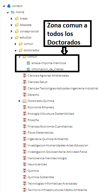 Como está distribuida en Sitecore la estructura de Doctorados.